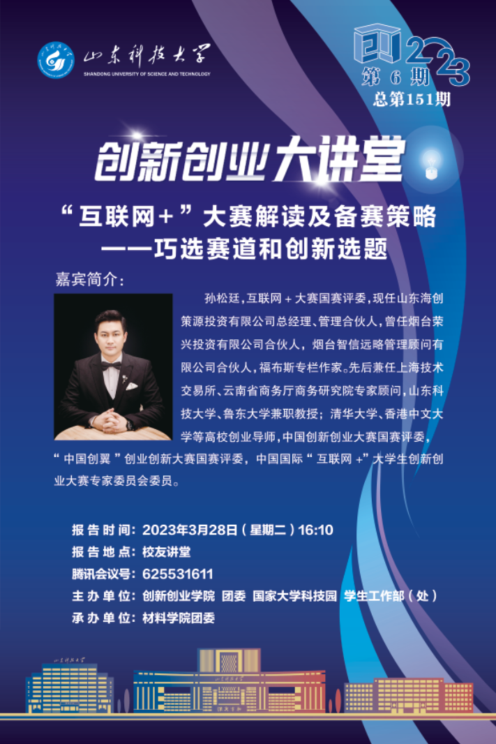 创新创业大讲堂总第151期:“互联网+”大赛解读及备赛策略——巧选赛道和创新选题