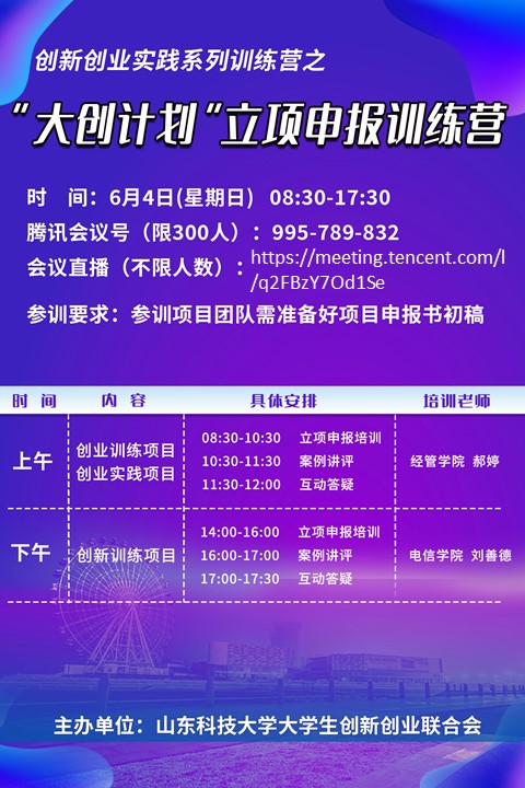 创新创业实践系列训练营:“大创计划”立项申报训练营
