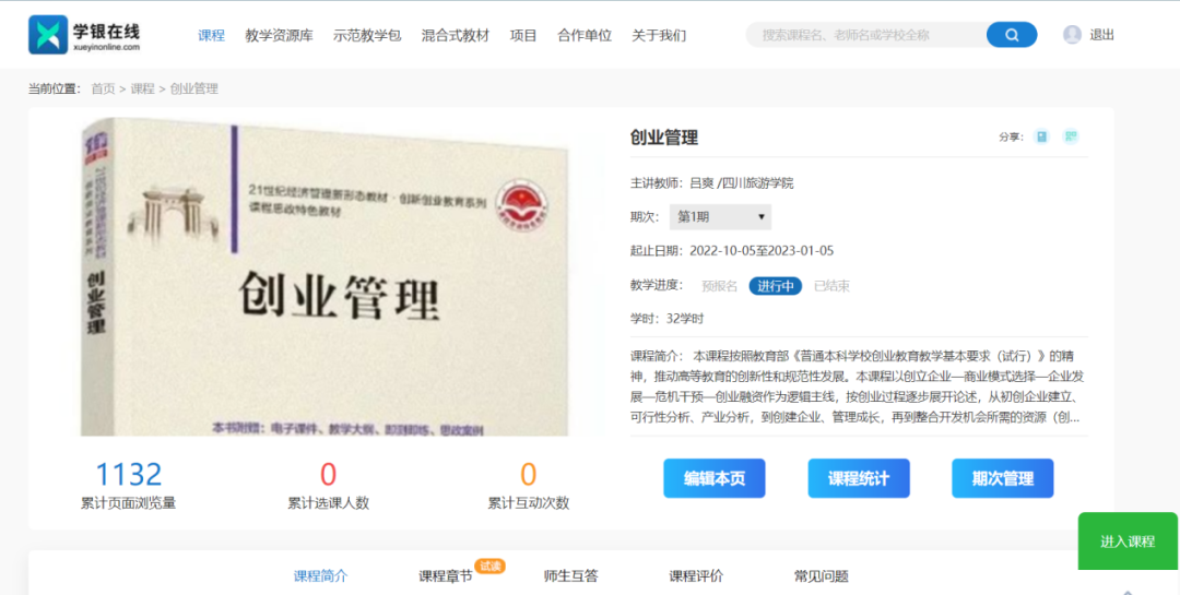 郝亮作为主讲教师与团队成员为本课程构建了较为完善的理论体系,以创立企业—商业模式选择—企业发展—危机干预—创业融资作为主要逻辑主线,使一个企业的鲜活形象跃然纸上;基于创业的实施路径,从创业管理的内涵、特征谈起,重点关照初创企业的生存和发展,市场营销、商业模式、运营管理、人力资源管理、财务与融资计划来构成课程的框架结构和主要内容。