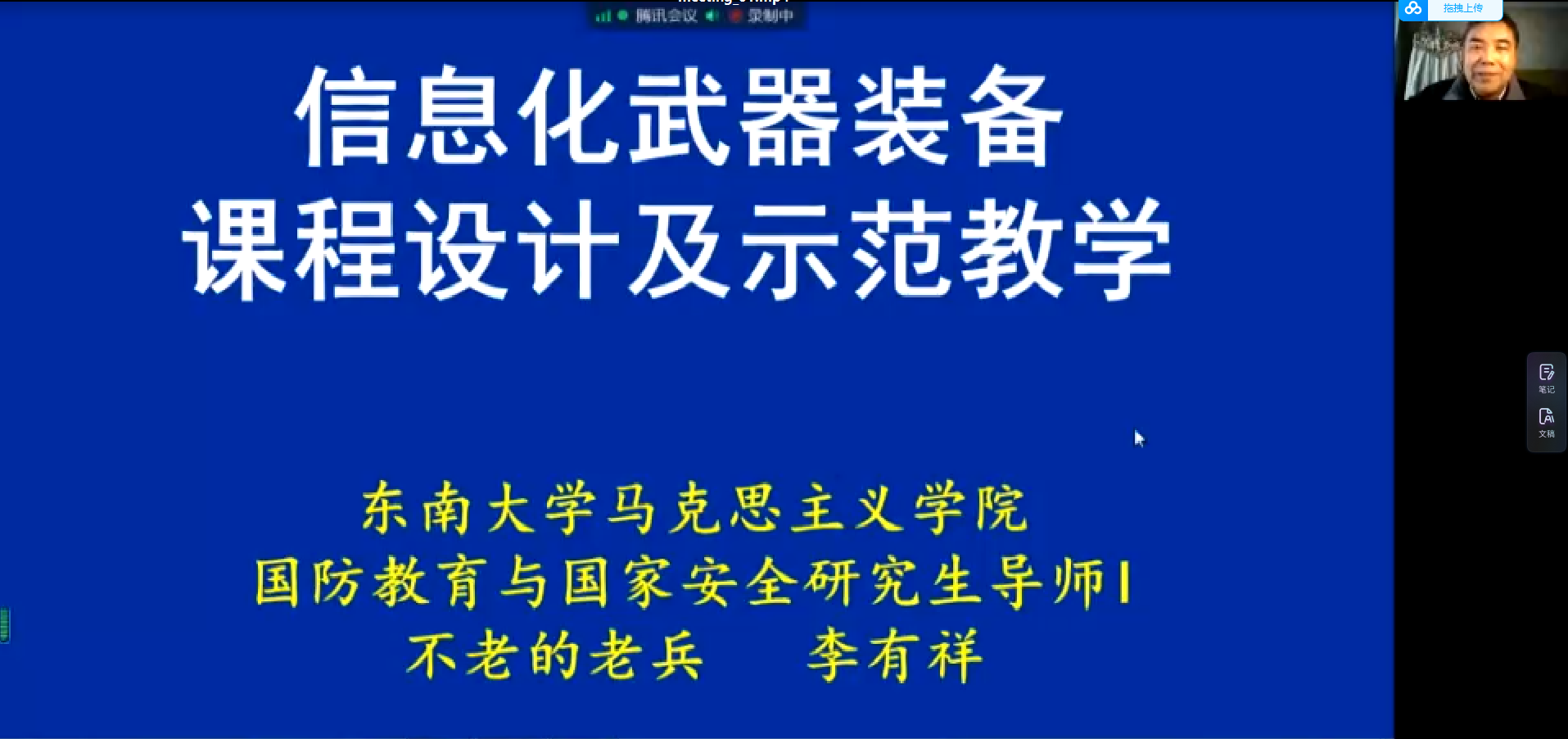 10日,东南大学李有祥讲授做了《信息化装备课程设计与示范教学》专题讲座。李教授从大纲展开,对课时安排、教学设计和案例示范等方面分别就信息化陆战平台、信息化海战平台、信息化空战平台和信息化杀伤武器做了精彩讲授。并且结合自身教学经验,讲授了案例运用技巧、教学资料收集等内容。最后还同大家做了交流。