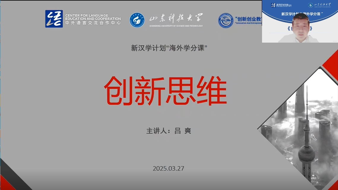 本次开设的《创新思维》课程共64课时,自3月27日起每周开课,至7月10日结课,核心内容是倡导基于创新实践的创业,包括创新与创新思维、创新思维方式、创新思维的方法与工具等八个章节,旨在从海内外教育交流互鉴出发,向世界传递中国创新创业的声音。