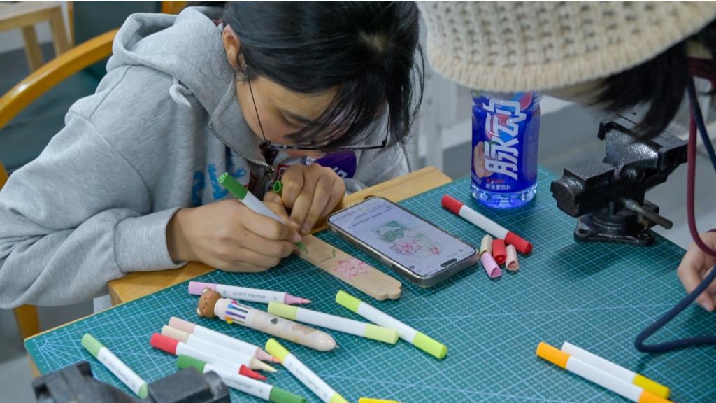 在劳动竞赛现场,选手们通过成果诠释劳动创造价值的深刻内涵。手工制作竞赛中“鹊桥仙·嵙大赋”、“勤谨熠熠映科园”等作品获评优秀劳动作品。(图6)