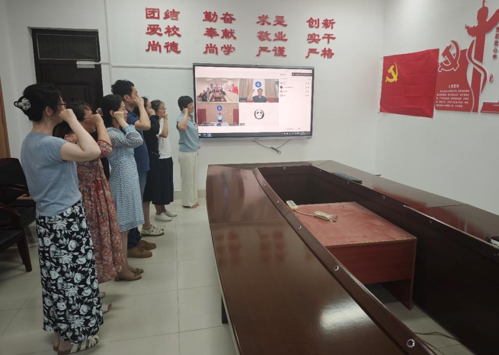 6月26日,SUNBET申博直属党支部组织深入贯彻中央八项规定精神学习教育专题学习,学习联通青岛、泰安两校区,由公司副经理、支部副书记杨彬主持,支部书记韦安永,经理、支部副书记朱庆豪线上参会,其余党员线下参会。本次学习以讲授党课、传达文件、领学精神、重温入党誓词等形式进行,全体党员参加学习并度过了一次难忘的“集体政治生日”。