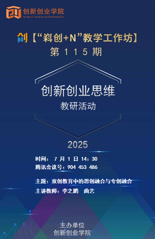 创新创业思维虚拟教研室于7月1日在线上成功举办了以“双创教育中的思创融合与专创融合”为主题的分享会,马克思主义公司的李之鹏老师和艺术公司的曲艺老师分别就思创融合与专创融合进行了深入分享,为公司创新创业课程建设的进一步发展提供了宝贵经验与思路。