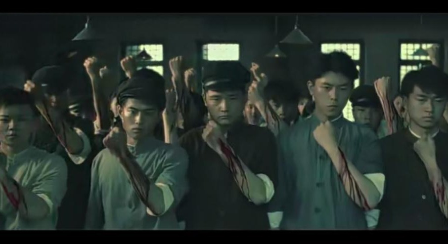 《望道》以陈望道翻译首个《共产党宣言》中文全译本为焦点,讲述了20世纪20年代以陈望道为代表的一批知识分子历经时代动荡变革,始终如其名“望道”一般追望救国救民之真理大道,将个人命运融入建党、抗日、建国等历史事件中的场景。当看到陈望道“蘸墨食粽”的情节,党员们一片会心的笑声,也纷纷被他沉浸于《共产党宣言》的翻译工作而折服,他不仅是一位翻译巨匠,更是一位坚定的信仰者。当看到四一二事件中河里漂浮的尸体,当看到杨阿龙就义后面朝下砸进泥水里……党员们对红旗为什么是血染的有了更深的理解。